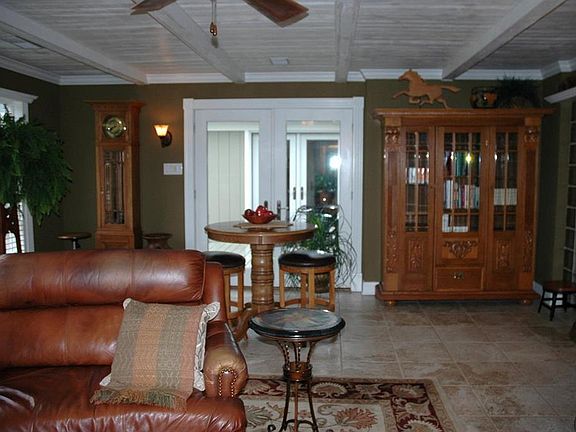 You may never find another home like this magnificent custom built brick property. Set back on it's landscaped 8.9 acres with pond at the edge of town. A 4 stall horse barn and additional shelter are at the back.The current owners have added a large addition with a wrap around deck and have redone every surface of the home which includes new Pella windows and doors, new hardwood floors and tile, 2 Lennox heat and air units, new 400 amp wiring.The large, beautiful remodeled kitchen features an island, gas fireplace, all new cabinets(some glass) and granite, beverage center, pantry, paneled appliances, heavy duty hood over 6 burner stove, double wall ovens, double Fisher and Paykel dishwashers, wine rack, refrigerator, finials by hood pull out for spice storage, and hot water dispenser at the sink. Both remodeled full baths feature Jacuzzi tubs and double sinks. Back of property is in flood zone but the home is not and owners have FEMA documentation that they do not require flood ins.