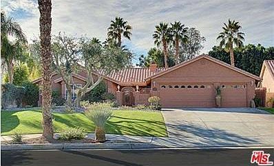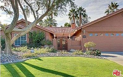 After seeing the photos and visiting this home, try to find a better value... Hurry because this amazing Regency Estates home will be hard to beat. The yard alone is superior those of most million dollar homes in the desert. 3 bedroom/3bath home with upgrades galore: Tile flooring, granite countertops, upgraded cabinets, upgraded bathrooms, huge great room with 2 seating areas, formal dining. Look at the baseboards and crown moulding. This home is decked out! The yard has a lovely covered patio with pro-misters. The resort-style pool has cascading and sheer waterfall features, a tanning shelf, spa, fire pit, lighting and a generous size greenbelt surrounding the multi-level pool deck. Additional features include an alarm, a video monitoring system, water softener, multiple decorator ceiling fans and lighting with dimmers. Meticulously cared for. Most furnishings available under separate contract if you are looking for a turn-key opportunity. Correction: Not IID electric.