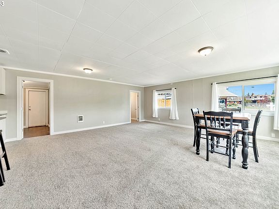 Nicely updated and across from Dexter Lake in the quiet community of Dexter. Large living space with views of the lake. Kitchen space with large pantry. Possible third bedroom or den. Inside laundry. New walk-in tile shower. Newer vinyl double pane windows and newer roof. Surrounded by large fenced lot.