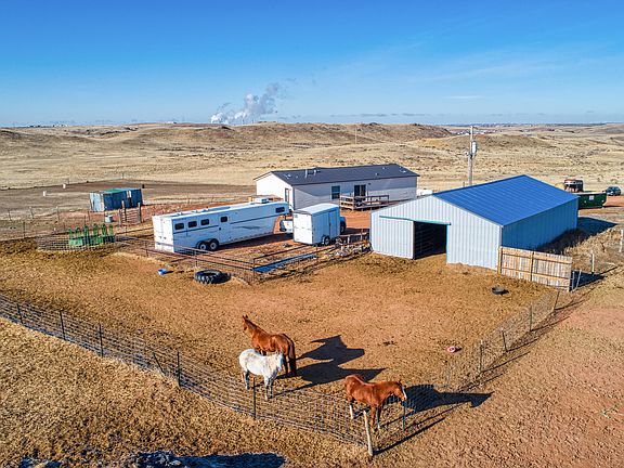 Beautiful home on 5 acres within 15 minutes of Gillette!! Fantastic set up for horses with fenced pastures and a 30x54 barn/shop!! Inside the home you will find a stunning kitchen with beautiful hickory counter tops, stainless steel appliances and tons of counter space for all your cooking and baking desires!! The open floor plan is perfect for entertaining with bar seating and a large dining and living room boasting updated LVT flooring! Enjoy the large master suite complete with a 5 piece master bath including double sinks, a large soaking tub and a separate shower! 3 bedrooms plus a custom built in office area and a mudroom make this home very functional!!