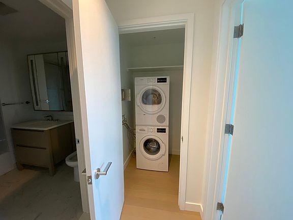 The Harris 1 bedroom + den 1 bathroom 700 square feet $5595 per month Available immediately. 2 months complimentary rent on 17 month or greater lease term Upfront costs are first month and one month's security deposit with an option to be waived if rent is paid through bank auto-pay ($5595 to $11,190). No broker fee. Guarantor program is available for student applicants without income or international applicants. Den included, laundry in-unit, granite countertops, ceramic tile flooring, pet friendly with restrictions Landscaped roof terrace, fitness center, indoor pool, sauna, bouldering wall, game room, pet care service, squash court, half basketball court Residents pay for electricity, and can elect for internet and cable service. All other common utilities are included. Parking available: $420 / month on-site assigned covered parking