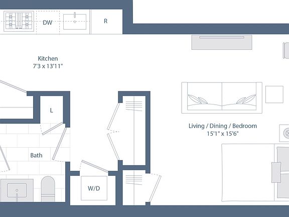 The Harris Studio 1 bathroom 400 square feet $3750 per month Available immediately. 2 months complimentary rent on 17 month or greater lease term Upfront costs are first month and one month's security deposit with an option to be waived if rent is paid through bank auto-pay ($3750 to $7500). No broker fee. Guarantor program is available for student applicants without income or international applicants. Laundry in-unit, granite countertops, ceramic tile flooring, common laundry in building, pet friendly with restrictions Landscaped roof terrace, fitness center, indoor pool, sauna, bouldering wall, game room, pet care service, squash court, half basketball court Video walkthrough available Residents pay for electricity, and can elect for internet and cable service. All other common utilities are included. Parking available: $420 / month on-site assigned covered parking