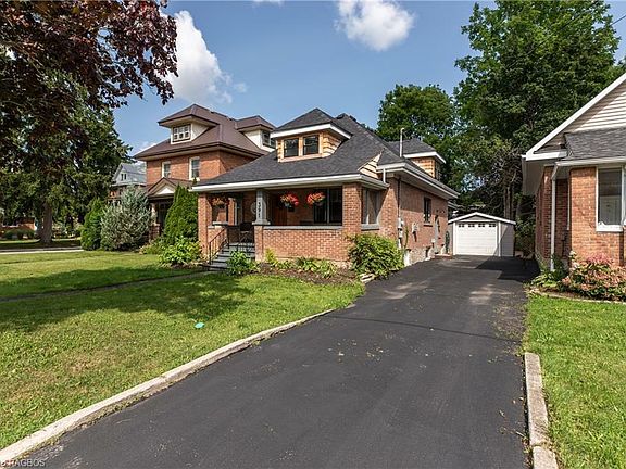 This stunning Century home seamlessly blends timeless charm with modern luxury! Every inch has been meticulously renovated to preserve its historic character while incorporating high-end finishes that exude sophistication. Located in a charming and historic neighbourhood near the Sydenham River and Harrison Park. As you approach, you'll be greeted by a deep front porch, ideal for enjoying your morning coffee. The tongue-and-groove cedar ceiling and ample space for patio furniture create a welcoming entrance. The well-preserved wooden front door hints at the care and attention given to the rest of the house. Inside, the heart of the home is a beautifully crafted kitchen featuring hickory wood floors, sleek white cabinets, quartz countertops, and top-of-the-line Café appliances. Unique touches, like the rose gold handles, a distinctive range hood vent, and exposed brick, add character to the space. A large window over the sink provides natural light to the space, while wood beams and countertop tie the kitchen's design together perfectly. The primary bedroom suite, located at the back of the house, offers a spacious walk-in closet and a wall of windows overlooking the lush backyard. The ensuite bathroom impresses with double sinks, a stand-up shower, and elegant gold accents throughout, creating a luxurious retreat. On the main floor, you'll find a versatile dining room and a cozy living room featuring a historic fireplace mantle recovered from an old theatre company. The original wood windows have been updated with modern storm windows, maintaining the perfect blend of charm and functionality. Upstairs, the second floor adds extra living space with a third bedroom and a half bathroom, making it ideal for kids or visitors. This home offers a unique opportunity, making it a must-see for anyone looking for a one-of-a-kind property.