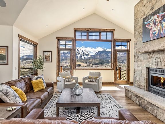 Perched high up the side of Ptarmigan Mountain, enjoying one of the highest homesites in the Town of Silverthorne sits 391 Angler Mountain Ranch Road, a stunning contemporary home that captures endless views of the Gore Range, Ten Mile Range, and far beyond. The long private drive helps separate you from the worries of the world, and welcomes you to your new mountain getaway. Upon entering, be awed by the grandeur of these prized west-facing views, perfectly framed in every window. Modern finishes, such as a large quartz island and stainless Thermador appliances, capture the eye as you seamlessly drift through the kitchen and living room spaces, flowing freely to the dining area and oversized decks. The great room’s floor-to-ceiling stone fireplace, and massive windows further enhance the feeling of indoor / outdoor living for which Colorado is so famous. Designed to provide single floor living with the primary bedroom accessed down the hall from the kitchen, and the first guest suite just beyond. Main floor is also entirely handicap / wheelchair accessible. Comfortably entertain more guests on the lower level, with an oversized second living area, additional 3 bedrooms, and private office. And store all the mountain toys you can imagine in the spacious 3 car garage and finished attic storage above. With its convenient access to I-70, and Summit County’s multiple world class ski resorts just minutes away, it’s easy to see why 391 Angler Mountain Ranch Road should be your new dream escape into the mountains.