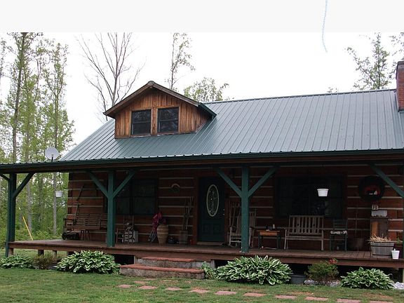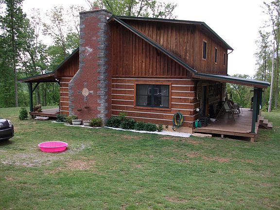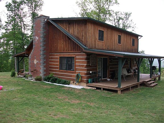 Awesome log home and 5 acres. 3 bedrooms ( one is a loft bedroom). Great room with beautiful fireplace, open beams, nice kitchen with beautiful pine cabinets, 2 baths, one in each floor. Master bedroom on the main floor. Beautiful wood floors with tile in kitchen and baths. The best feature is the two covered porches with spectacular views of the beautiful Appalachian Mountains. Carport and outbuildings are pluses too. Don't wait, call your realtor today to see this magnificent place!