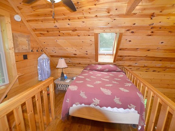 What this cabin lacks in size it makes up for in style and quality! Gated driveway to a secluded 384 sq. ft. cabin surrounded by mature trees with beautiful fern-covered understorey. The living area is well laid out. There is a small kitchen, living area, full bath, and enclosed porch on the main level. The upstairs is a one-bedroom loft big enough for a full-sized bed with a skylight for natural light. The septic permit is for a 3 bed 2 bath structure so you could potentially add on to the existing cabin. There is an outbuilding-no power, no water-used mainly for storage. The cabin was painted in June 2021. The back border of the property is a creek.