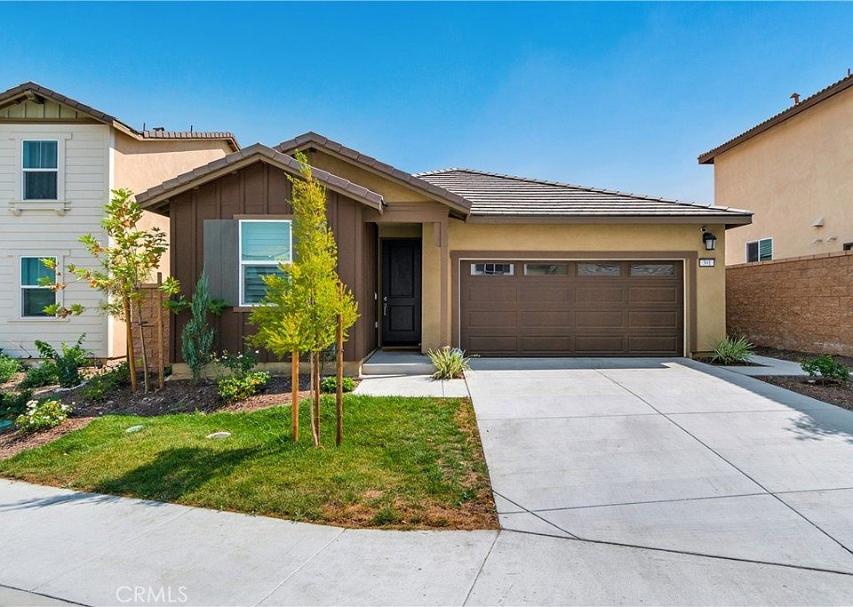 Discover your dream single-story home within the Blueridge collection @ River Ranch master plan in Rialto. This 3-bedroom, 2-bathroom residence offers 1,547 square feet of thoughtfully designed space on a generous 4,339 square foot lot. Step inside to discover an open floor plan bathed in natural light and upgraded laminate flooring throughout. The gourmet kitchen is a chef's dream, equipped with modern appliances, ample counter & cabinet space, and a convenient center island. Retreat to the primary suite with double vanity sinks and a walk-in closet. Two additional bedrooms, including a versatile office, accommodate family and guests with ease. Unwind in your own private backyard with mountain views. Recent upgrades include elegant plantation shutters. Enjoy the convenience of a two-car garage, an indoor laundry room, tankless water heater, solar panels, and the peace of mind that comes with low HOA fees. Ideally located near transportation, shopping, dining, Shandin Hills Golf Club, and Ontario International Airport, this exceptional home offers the perfect blend of comfort.