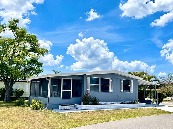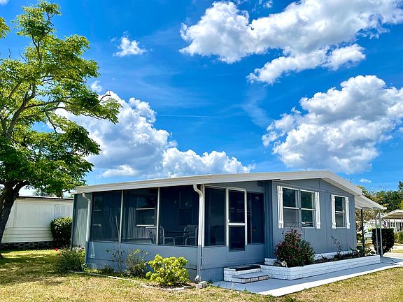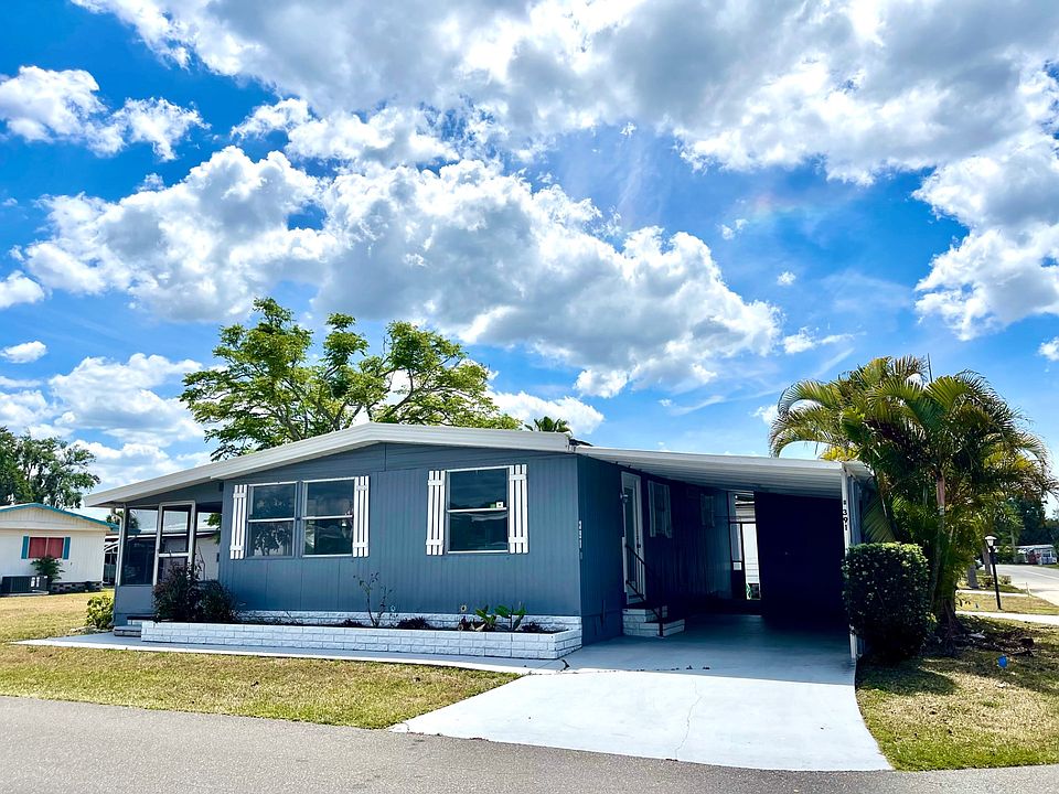 Enter this home into the open concept living area with eat-in kitchen, crisp white cabinetry, one-of-a-kind wine crate backsplash, gorgeous white quartz countertops, stainless steel appliances, island w/bar stool seating & cabinet storage. The slider in the living room leads to the screened in lanai where you'll have a view of this homes large corner lot with no homes directly beside you...giving you an extra large yard to create outdoor paved sitting areas under the lovely shade tree, landscaping,...make it your own! Seller has installed recessed lighting, and laid three-quarter inch sub flooring and luxury vinyl plank flooring throughout. The walls have been freshly painted and updated with bead board detailing giving the home that built-in coastal feel you're looking for. Both guest and Master bath have new vanities, fixtures, countertops, and commodes. The guest bedroom and closet are the perfect size, and in the master you'll find three closets, as well as a reading nook for enjoying a book and admiring the view of your yard. This corner lot has the rare and unique feature of two separate driveways allowing for extra parking. There's a brand new carport with storage shed with washer and dryer and plenty of room for your tools, and the roof for this home was resealed just 6 months ago. Colony Cove is a pet friendly 55+ resort style community offering 6 pools, 4 halls, pool hall, wood shop, 2 state of the art fitness centers, Colony Cove farm, Manatee River Pavilion and fishing pier, Picnic Island with dog runs, picnic tables, and kayak launch, Boat Marina, multiple Pickle-ball and Shuffleboard courts, nature trail, over 70 clubs to join, the Colony Cove "fun bus", and more! Just 14 miles to beaches & shopping/dining of Anna Maria Island, 17 miles to the #1 rated award-winning Crystal Sand beaches of Sarasota's Siesta key to the south, Tampa/Saint Pete to the north, and with the many local shopping, dining, cultural, and sports events nearby to enjoy, this home couldn't be more perfectly located! Asking price for this gem is a steal at $49,900.....lot rent is $918.21 & includes water, sewer, trash, recycling, lawn care, and all amenities mentioned above. Don't let this one get away! Call and start your Florida dream today! All listing information is deemed reliable but not guaranteed and should be independently verified through personal inspection by appropriate professionals. Integrity Mobile Home Sales cannot guarantee or warrant the accuracy of this information, measurements, or condition of any property. Measurements are approximate. Lot rent subject to change