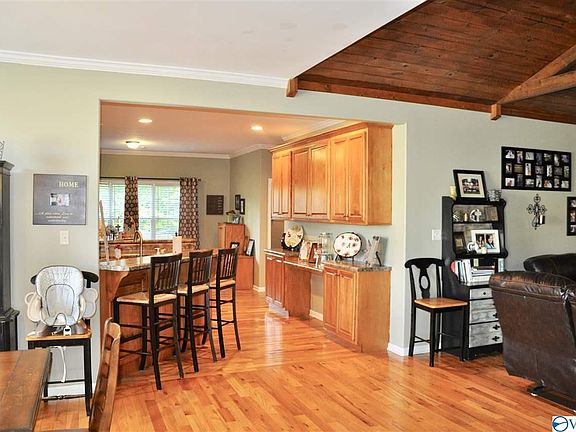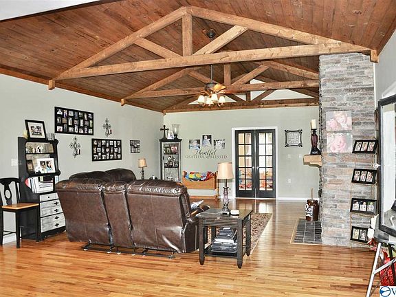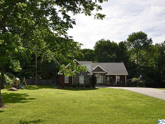 You'll love the convenience to everything.....just a short skip to Huntsville, golf, beautiful Guntersville Lake, Marshall Medical North, and an easy jump to Decatur. This home offers privacy yet it is part of a beautiful community as well. Nestled against a background of beautiful trees and a flowing creek, with a large fenced back yard and a large front yard too, you'll love this home. With the rock gas log fireplace, with exposed beams, hardwood floors, stainless appliances, 2 bonus rooms, split floor plan and a open concept, this home leaves nothing on your wish list. The tile floors and 9' ceilings are just more extras. Call today for a private showing, this one won't last long......
