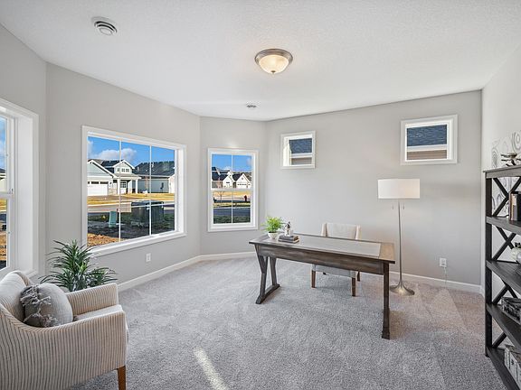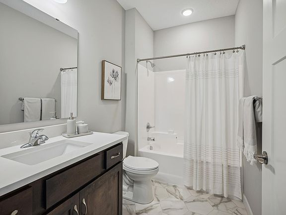 See Sales Consultant about lower interest rate options on select quick move in homes. JP Brooks presents the Lakewood Villa Elevation D on a SOG Home in the River's Edge Community of Hanover. Conveniently located in the DTWN area of Hanover, walking distance to River Inn, Big Boar BBQ, & 2 parks on each side of the community. STMA Open Enrollment Option. GMT KTCH B w/ woodhood, gas cooktop, DBL walloven, SS appliances (upgraded refrigerator) & upgraded huge island w/ paneling/wing walls. LR features a gas fireplace & a step vault ceiling w/ wood beams. Vaulted 4 season porch off the DNGRM that leads to a spacious outdoor patio. PMBR features a vaulted ceiling w/ ceiling fan & leads to the LUX PRBTH that is fully tiled, that includes a bench, & custom glass shower door & spacious WIC. Office & additional bedroom located in the FOH. Oversized 2 car garage that includes stairs that lead to a storage room. Full yard sod & irrigation included. COMPLETED NEW CONSTRUCTION