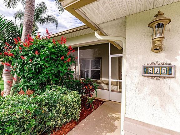 SO MANY lovely features include..Concrete block construction, Deep Saltwater Pool, Stamped Concrete Drive, Garage Screen, Gutters, New W&D+Dishwasher+Range+Microwave. Fl room w/french doors to ultimate private pool paradise! Pool has shallow play area & jacuzzi ledge. Fence, beautiful landscaping, fire pit. Power stays on during hurricane-same pwrline as police/fire dept. (sizes approx.)