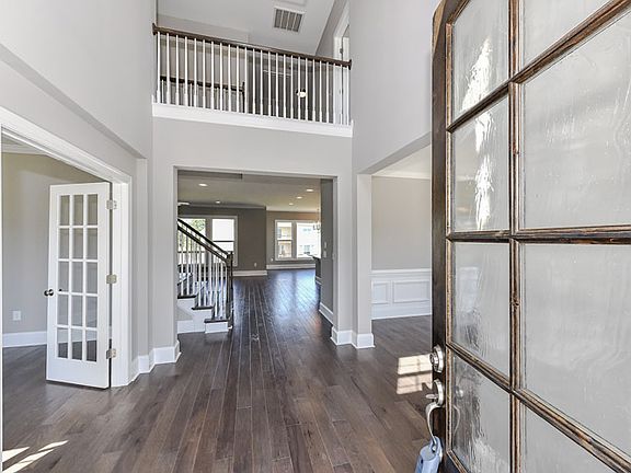 The exterior of this home features a welcoming front porch and four sides painted siding with stone accents. Off the foyer is a dining room and Study with double doors, and then it's on the rear of the home. This open plan boasts a gas fireplace in the Family Room, Morning Room wrapped in windows, and a spacious kitchen with large island, quartz counters, light gray painted cabinets, stainless steel split cooking appliances with 36" gas cooktop, farm sink and stunning marble backsplash. Enjoy our beautiful Carolina weather on the rear covered deck. At the back corner of the home is a generous guest suite with private bathroom. Mud Room has built-in drop zone. Upstairs, the Owner's Suite includes a tray ceiling and access to the second story rear covered porch. The bathroom has a very large walk-in closet, double vanity with quartz counters, soaking tub and large tiled shower. There is also a large Bonus room plus a Rec Room for additional living space. Small loft area can be used as a homework station! The 2 secondary bedrooms share a Jack & Jill bath. Hardwood floors are throughout most of the first floor, with oak stained treads on the stairs, and tile in all full baths and laundry room. Community amenities include a pool, pavilion, tot lot, and pond. MLS# 3300354