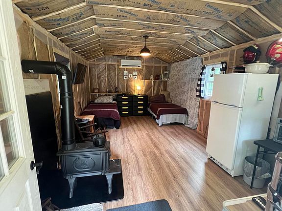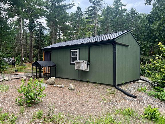 Situated just 10 minutes from beautiful downtown Unity's restaurants, College, and retail areas, this property would make a great on grid camp, an all season livable interim while you build your dream home, hunting lodge, or install more cabins on the several cleared and level areas for glamping sites.