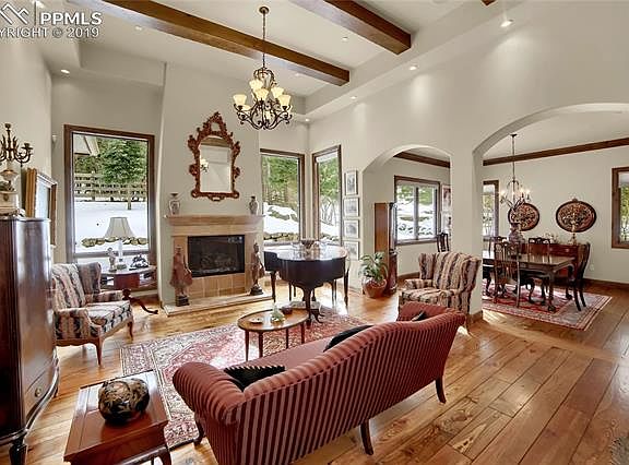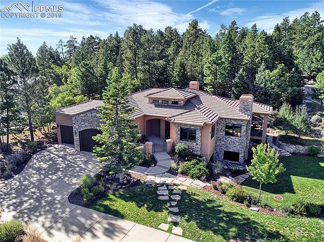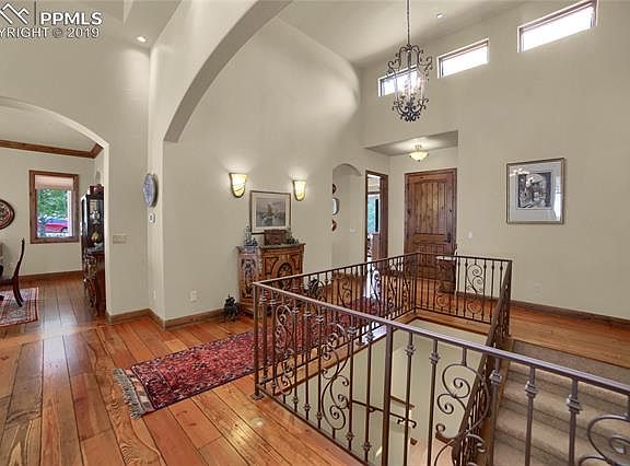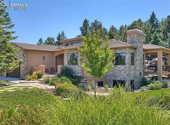 From the moment you step into this meticulously kept home, you will appreciate the sophisticated updates and abundance of character throughout. Warm tones, architectural arches, hewn pine plank floors, hand troweled walls, architectural arches, beamed vaulted ceilings, alder wood cabinetry, refined lighting, stone accents, 3 fireplaces, travertine marble, wrought iron balusters and crown molding. The abundance of perfectly positioned windows captures magnificent Cheyenne Mountain views and the quintessential Colorado skies which give a feeling of extraordinary quality with a designers touch. One of a kind gourmet kitchen featuring custom cabinetry, granite countertops, Sub-Zero/Wolf appliances, stone range hood, dramatic lighting, custom backsplash, wine refrigerator & hearth room with stone surround fireplace. Walk out with your cup of morning coffee onto the covered deck with retractable shade screen as you take in nature. More custom touches flow through the enormous great room with stone surround fireplace and the adjoining spacious dining room; this area is flexible for entertaining large gatherings or a relaxed event. Relax and unwind in the main level master suite featuring a huge walk in closet with custom built-in drawers, shelves & full length mirror. The main level is complete with a study/office/den, as well as a second bedroom with a walk-in closet and a full bath. The walk-out lower level has it all with a large versatile rec room, wet bar, gas fireplace, 2 additional bedrooms, 2 full baths and large carpeted storage rooms. The walk-out feature has charming stone steps up to the lush garden area. Entertaining will be unmatched from the outdoor living area.