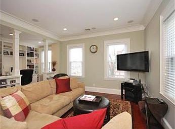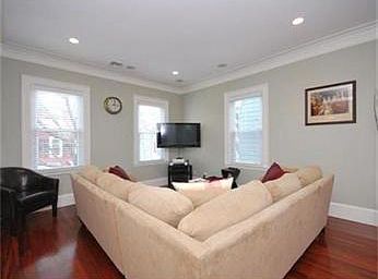 AVAIL FOR A MOVE IN SEPT 1-Stunning, custom built, sunny condo on beautiful, tree lined K Street in South Boston. 2 BR + 2 1/2 baths. Great location between Marine and Columbia Rd, just one block to beach and in a central location of Southie walking distance to restaurants/shops/etc. 2nd and 3rd floor, duplex-main floor consists of granite and stainless kitchen with an island and wine fridge, living room, office area, and a large private deck with outdoor built in speakers with water views. The upstairs has two equal sized bedrooms, each with their own full bath that includes jacuzzi tubs & flatscreen tv's mounted on wall (staying in unit). Very modern, cozy & private unit. Surround sound built into living room, laundry in unit on 2nd floor, central air. 1 year lease. Tenant to pay fee of one month, 1st month's rent and security deposit of one month due at lease signing. Tenants pay utilities. No dogs, a cat would be ok. *photos from previous tenants*