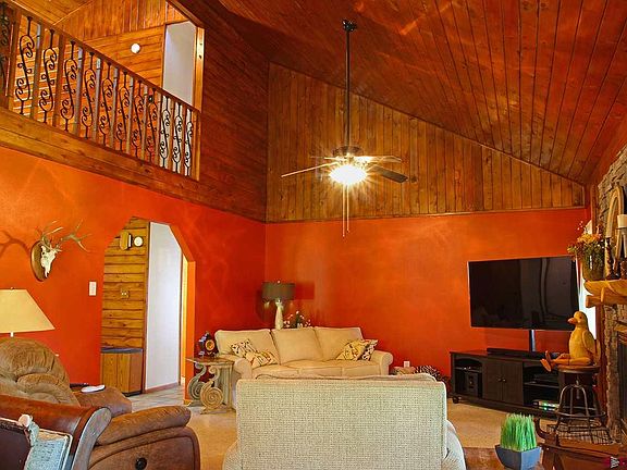 This very well cared for home is towards the top of Forest Lakes and it sits on a relatively flat one acre lot. This is also on a quiet street with little traffic, well off of the loop road! This four bedroom(one with its own private balcony) and two full bath home is in great condition! The stair railing is custom made and accents the octagon window that lets the sun shine in on the staircase landing and shows the beautiful grain of the knotty pine walls and ceiling which have been recently restained. The main floor master has a spacious master bath with both a shower and a tub with slate gray tile around the tub and on the floor. You're going to love the huge walk in closet, too. Cozy up to the stacked stone gas fireplace with the tile hearth and log mantel. It is the focal point of the living room. The formal dining area adds to the ambiance of the living room and also enjoys the fireplace. There is a wonderful south facing sun room just off the living room as well. The bay window breakfast nook is the place to enjoy the view of the back of the property. The kitchen has stainless appliances with Corian counter tops and don't miss the mudroom from the garage, the pantry and laundry room. Ceiling fans throughout both floors of the home keep it just the right temperature all year round. There is plenty of room in the garage for cars because there is a storage shed behind the garage as well as a detached storage shed with electricity for the rest of your toys. This is also a handy place to park the RV with a 30 amp electric service. Plenty of room on this relatively flat 1 acre lot with beautiful tall pines, plenty of grass and great light too! This one is a beauty!