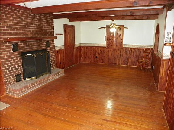 Private setting off main road offers woods and pasture land.Great for horse farm with water on property.New paint inside with hardwood and laminate floors throughout.