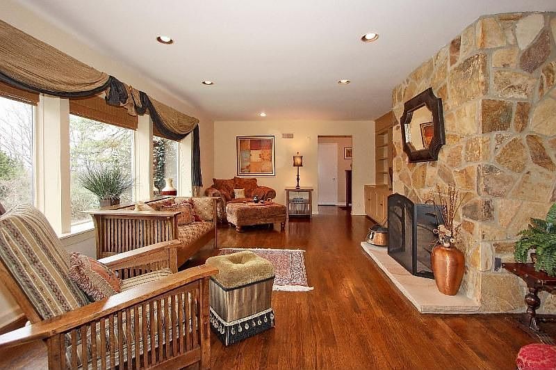 Sunny and Spacious 4 BR/3.5 BA home set on 1+ acre of beautifully landscaped property. Eat-in Kit opens to Great Room w/vaullted ceiling, lg. windows, fabulous.stone fireplace and access to patio and deck.