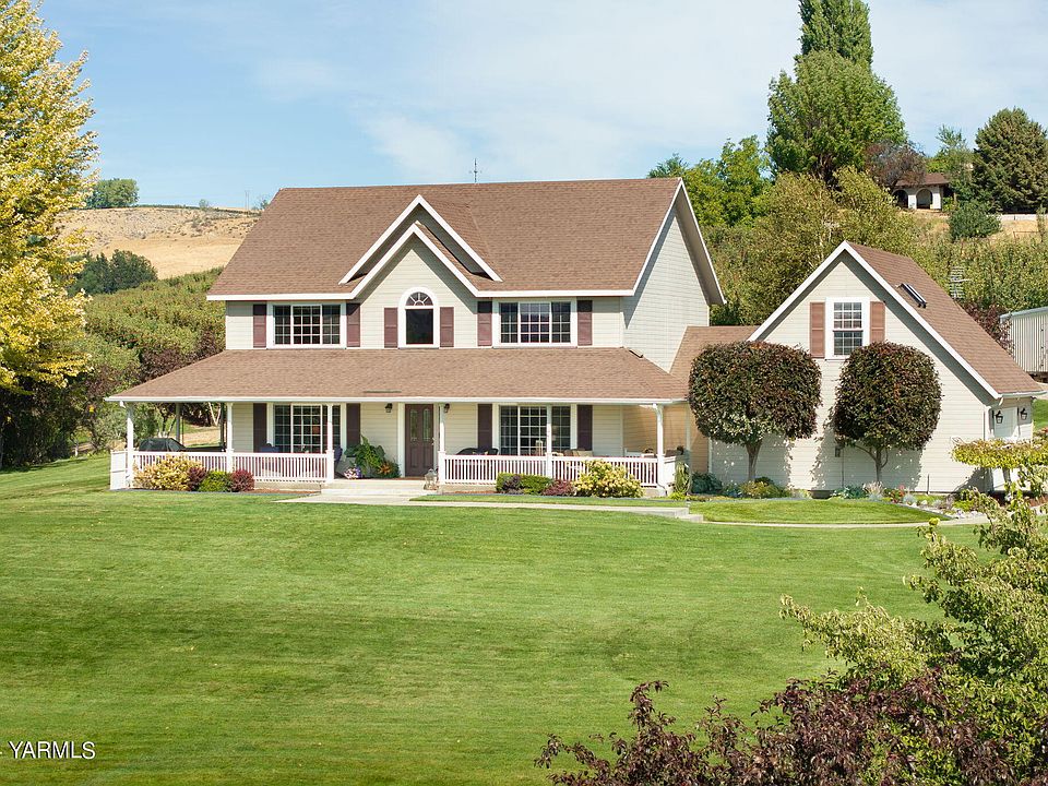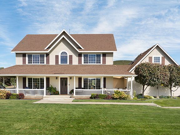 Discover your peaceful retreat in this beautifully maintained 2.36-acre Gleed country home. Nestled amidst picturesque orchards and rolling hills, this custom-built 4-bedroom (+bonus room) home offers breathtaking views and a relaxing, inviting atmosphere. The moment you arrive, you'll fall in love with all this property has to offer. Relax and unwind on the wrap-around porch while taking in the views. Come inside to find the open concept kitchen/living room plus two versatie rooms perfect for use as an office/den, formal dining or additional living spaces. On the main floor, you'll also find a convenient pantry, 1/2 bath and a large laundry room/mudroom off the garage. A bonus room above the garage offers a full bath, extra storage, sunny skylights and a retreat away from the rest of the home. Upstairs, the primary suite is complete with a clawfoot tub, double sinks, double closets and more beautiful views. Outside, enjoy the tranquility of your private backyard, including a firepit, perfect for cozy evenings under the stars. The well-maintained grounds include underground sprinklers, a 3-stall shed, and mature shade trees. The large garage can accommodate two cars, plus a third bay that's currently used as a workshop. If you're seeking a peaceful and inviting retreat, this country home is the perfect place to call your own. Schedule a showing today and experience the tranquility for yourself.