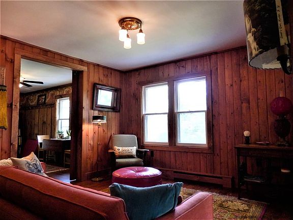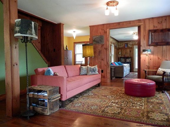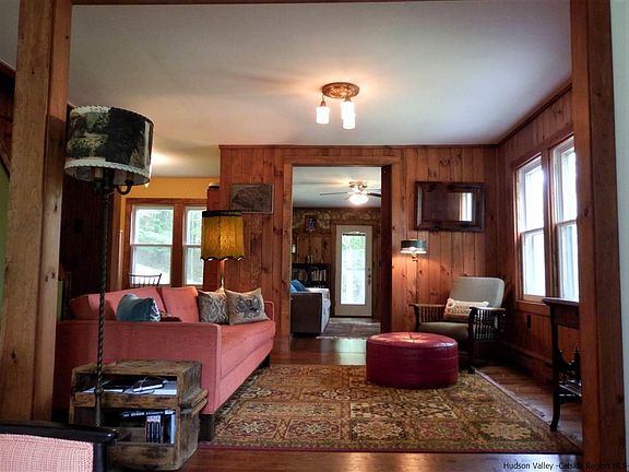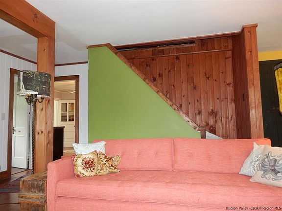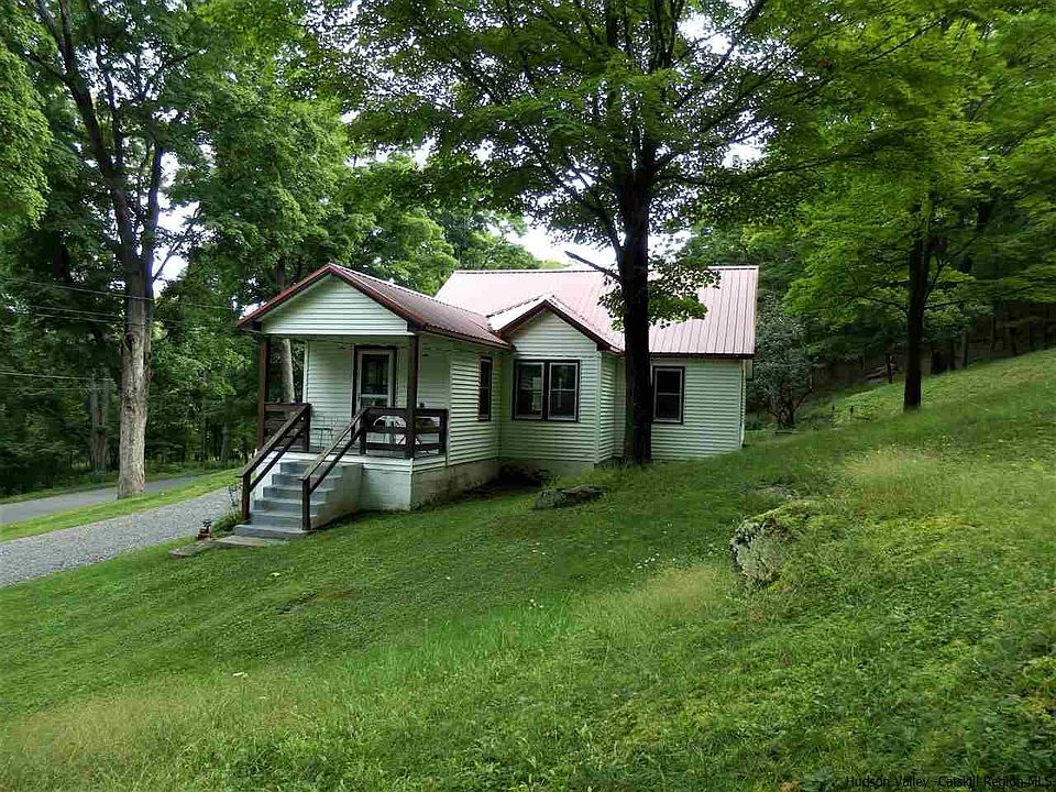 Looking for that perfect getaway in the Catskills? You just found it! This 3 bed/ 2 bath home on 6 acres is set on a knoll on a quiet country road in the lovely hamlet of Round Top. The home features 2 cozy covered porches. One off the front of the house, and the other off the guest bedroom (currently used as a library) with seasonal mountain views plus a side deck off the kitchen . Most of the interior has been lovingly and tastefully renovated with features including updated bathrooms, built in cabinetry, a barn door and a new brick surround for the woodstove. This home is a must see!.Near skiing, antiquing, fine restaurants, The Lumberyard, state hiking trails, mt. biking, HITS, Hudson, Catskill, Woodstock and Saugerties. 2 hours from NYC.