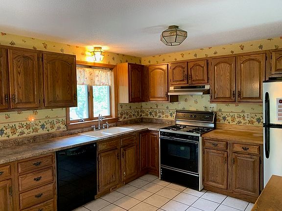 Raised ranch with a spacious floor plan. Living room has wall to wall carpeting, vaulted ceiling, picture window and fireplace. Large fully applianced eat-in kitchen with ceramic tile floor, bay window and sliders to deck*. Large master bedroom with convenient half bath, two additional bedrooms and a full bath with tub/shower combination. Lower level has a large family room with a dry bar and a pool table for your family's enjoyment. Utility area with gas fired hot water tank, gas fired forced air system and a washer and dryer. Two car attached garage - one bay with EDOP. Fenced yard and family built shed. Roof re-shingled approximately 5-7 years ago. Heating unit, air conditioning condenser and hot water tank are all functioning but are aged. Nice solid home in a beautiful setting with flowering trees, private fenced yard, abuts lovely neighborhood, just needs a little interior sprucing to be glowing again.