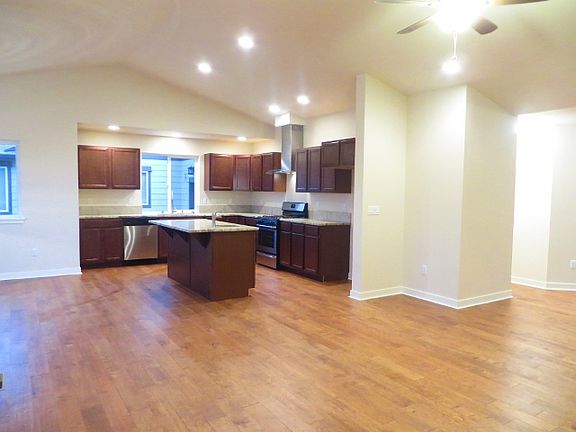 Beautiful home you will love. Open floor plan allows one to view granite countertops in kitchen from cozy living room w/ gas fireplace. All stainless steel appliances fill kitchen, as well as gas stove. Vaulted ceilings with ceiling fans give the home an airy, open feel. Master bath has dual vanity, soaking tub, and tiled shower. Out back, covered patio with views of landscaped, fully fenced yard w/ outdoor fireplace. Access to association amenities include pool, basketball court, and dog park.