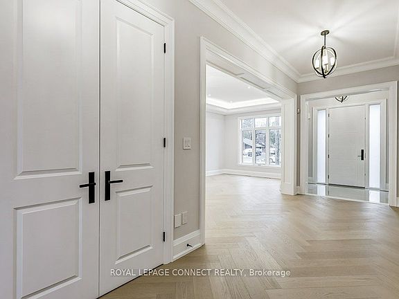 Designed for long-term family living, 393 Rosebank is a newly completed residence by Highglen Homes, a provincially registered builder with over 35 years of experience, including 20 custom homes completed across Pickering since 2010. Backed by a full 7-year Tarion warranty, this home offers buyer confidence and enduring value. With 4,251 sq. ft. of above-grade living space plus 956 sq. ft. of finished basement, this 5+1 bedroom home includes a lower-level in-law or nanny suite, well suited for multi generational households, extended family, or guests. The layout is efficient and well balanced, with a thoughtfully designed floor plan and generously sized bedrooms. The main floor is bright & open, with predominantly 10' ceilings & a layout designed for everyday comfort & entertaining. Finishes include herringbone hardwood flooring, solid wood casings around doors & windows, extra-tall solid wood baseboards, custom built-in storage, & upgraded lighting. Featuring chefs kitchen with large breakfast area & walk-out to rear yard, as well as an attached servery & plenty of storage with walk-in pantry. The dining space easily accommodates a full-size dining table. The second floor features a spacious primary bedroom with two walk-in closets fitted with custom millwork & soft-close drawers, & a 5-piece ensuite. Two additional bedrooms on this level each include a walk-in closet & private ensuite, along with the second-floor laundry. The third level offers two large rooms, both with walk-in closets & a shared bathroom, well suited as bedrooms, flexible living space, or dedicated a home office. Ceiling heights remain generous throughout, with 9' ceilings on the second floor & 8' ceilings on the third. Floor plans, appliance list, & a full features sheet are available. Measurements are based on plans & subject to construction variances. Taxes not yet assessed.