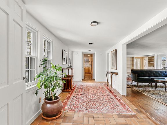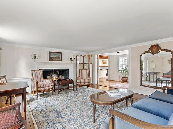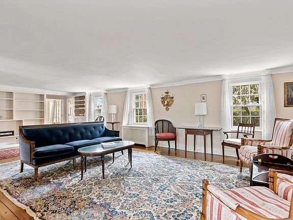 One of the most admired houses on Round Hill Rd. Charm extends from the Dutch front door to the elegant Dining Room wi/deep moldings, corner cabinets.Oversized Living Room w/built-ins, fpl. and French doors to terrace. Both room have original wide-board floors. Additions include the Family Room w/fpl.,built-ins openning to terrace. Kitchen w/ granite counters, desk area,and charming breakfast area with banks of windows. Butlers pantry and wet bar for gracious entertaining. First floor BR with fpl.,sauna, multi-closets . Second floor offers master suite with fpl in sitting area, multi-closets, marble his and hers baths. Flexible space with 2 or 3 more BRs on 2nd floor. Beautifully manicured grounds w/flowering trees and perennials. Two cottages with own driveway. A treasure .