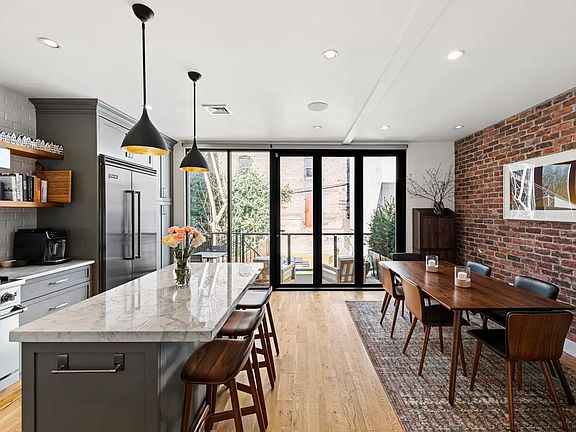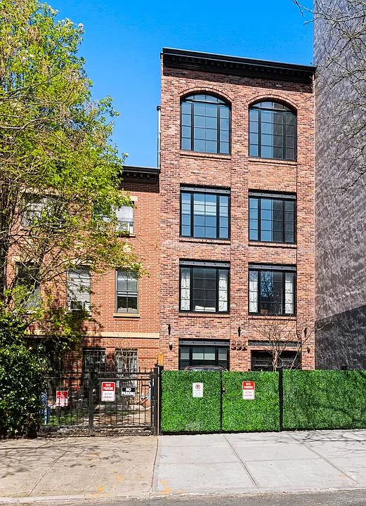 This one-of-a-kind custom townhouse offers the best of both worlds - a historic industrial-inspired design, coupled with state-of-the-art modern technology and amenities. Sprawling over 3,364 sq ft home offers a spectacular owners triplex and a separate two-bedroom, one-bath apartment on the first floor that offers valuable income-producing potential, or use as a home office, guest suite or artist's studio. In addition this home has an exclusive gated private parking. The spacious owner's triplex starts on the second floor with a spacious living room, guest powder room and kitchen complete with separate dining area. Built for entertaining, the open kitchen is fitted with grey Shaker-style cabinetry and Carrara marble surfaces on both the countertops and the large island with breakfast bar. A commercial-grade stainless steel appliance package from Viking, custom wine cabinet, subway tile backsplash and pendant lighting complete this functional, yet beautiful space. Wall-to-wall accordion-style doors on the back wall of the kitchen can be opened to the balcony, bringing the outdoors in. A spiral staircase leads down to the exclusive landscaped backyard - which features shade trees and a built-in barbecue. Three spacious bedrooms, a full bath and a laundry room can be found on the third floor, while the fourth floor is devoted to a spectacular 841 sq ft master retreat. With 11 ft ceilings and massive arched windows, this sun-drenched space has a loft-like feel - and includes a gorgeous Carrara marble bath with double vanity, and wet-room style glass enclosed shower and soaking tub with dual shower heads and elegant chrome fixtures. Other standout features include a video doorbell, central air conditioning, a Nest thermostat and Sonos surround sound system. The home is also complete with hardwood floors and recessed lighting throughout. Its convenient south side location is adjacent to restaurants, nightlife, shopping and multiple subway lines. In addition, with the home's exclusive gated parking spot, exploring the entire region by car is easy. With space to spread out, and a flexible layout - this is a true home in the heart of one of New York City's most desirable neighborhoods.