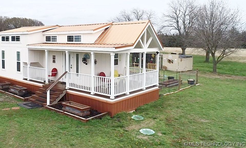 WHAT A CUTE FIND! This FULLY FURNISHED One bedroom/one bath, 399 sq. ft. tiny home on one Acre is located in Hendrix, Oklahoma. The exterior features a 20x30 Shop with insulation and electric. Inside the shop on one end is the washer and dryer and storage area with a roll up door. On the other is a Man cave! The shop has a 15-foot overhang for vehicle storage. Also included is a small tool shed, and a large chicken coop, chickens included. The back yard has two pecan trees and a fenced in area with raised garden beds of onions, radishes, garlic, tomatoes, etc. The interior features an open concept living and kitchen area with farmhouse sink and comes fully furnished with refrigerator, stove, and microwave. Head to the master suite and bathroom with Shower/tub combo, his and her closets and an upstairs loft for additional sleeping or storage. The home boasts natural sunlight, and beautiful window views. Enjoy the tranquility of the outdoors and country view on the covered front porch that wraps around to the garden area view. This is a unique find out in the country with so much included and MOVE IN READY!