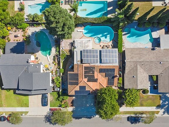 New flooring/baseboards (luxury wood look vinyl tile & carpeting Oct 2019), New can lighting (LED, multi-white color selectable, dimmable, Oct 2019), New interior paint (Oct 2019), Exterior paint 2017, 4 beds (1 bed & full bath down), (1 Bed has built in cabinets), 3 full baths + huge bonus room w/built-in cabinets on one end & media storage on other end, 2 etched glass dual pane sliding glass doors, Beautiful private backyard w/sparkling pool & spa, Remote controlled pool equip (high efficiency variable speed pump, gas & solar heating, pool/spa color LED lights) 2016, formal LR w/soaring ceilings & cozy stone FP, white wood shutters & blinds throughout home, Spacious Master BR w/walk-in closet & private bath, Newer Kitchen Aid appliances, dual-oven, microwave, dishwasher (stainless steel-black 2019), 3-car garage w/custom built-in cabinets on both sides & work bench, RV-access parking, Dual-pane energy efficient low-e windows, Upgraded 2 HVAC systems (two 3-ton systems, high efficiency), Dual-Honeywell electrostatic whole-house air filtration, Smart home (Wi-Fi garage door, door-bell camera, smart sprinkler controllers & dual-thermostats), large roof solar photovoltaic system (10.2 KVA), 49 panels total (30 owned, 19 leased, 30-solar panels come with house (owned, 6KVA system), additional 19-solar panels leased, Roof solar thermal water heating system for heating pool & spa (7 water-grids total), Newer Roof 2016, Backyard pond & fruit trees.
