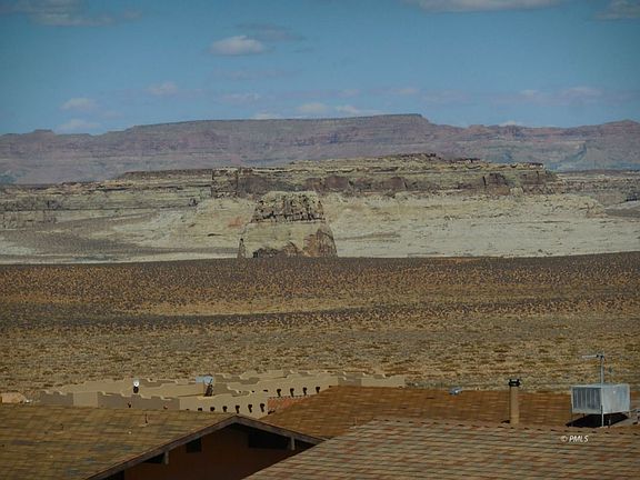 Sit in the backyard swing and enjoy beautiful views of Lake Powell and Navajo Mountain. This 1995 Fleetwood 27x62 has 1664 SF, a freshly refinished covered wrap-around deck, large carport and workshop area. New in 2015 - refrigerator, stove/oven, osmosis water softener, furnace and AC with a new dishwasher installed in 2014. The living room has views of Lake Powell from the oversized windows, fireplace and is large and welcoming. There is also a game room. The master is separate from the other two bedrooms and has a walk-in closet and a very large bath. All rooms have ceiling fans. This package includes a home on a joined double lot and very, very large RV/Boat port which provides protection for your Lake Powell toys. The total is .38 acres of view! Come take a look, enjoy the view and be ready to make an offer.