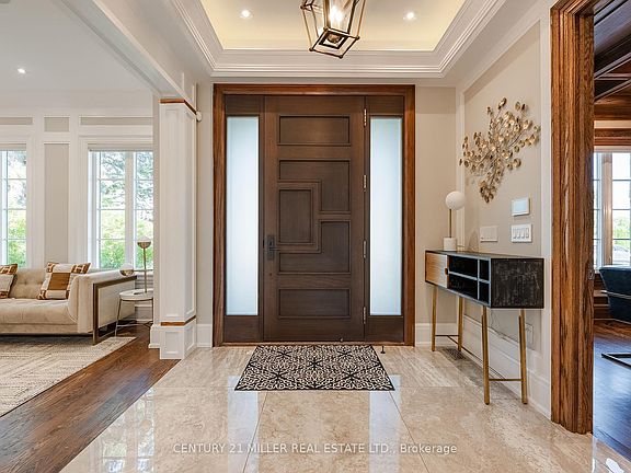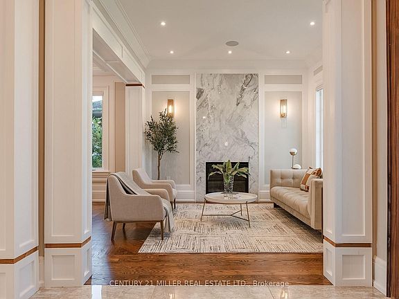 Excellent value in this custom home on a 75 lot, offering 5,400 square feet of total living space on a quiet street in West Oakville. Built with quality materials and filled with thoughtful features, the main level showcases 10 ceilings, detailed ceiling treatments, crown mouldings, elaborate wainscoting and wall trim, 9 baseboards, extensive pot lighting, built-in speakers, and multiple dimmer switches. The kitchen is designed for both everyday living and entertaining, featuring quality cabinetry, quartz countertops and backsplash, two sinks (including one on the island), central vacuum kick plate, Jenn Air appliance package, and a spacious eat-in area. It opens to the family room with a gas fireplace framed by custom wood shelving. Upstairs, four generous bedrooms each include their own ensuite, alongside a large laundry room. The luxurious primary suite offers an electric fireplace, walk-in closet with extensive built-ins and a vanity, plus a rare six-piece ensuite. This spa-like retreat includes two Bosco sinks with Riobel faucets, heated floors, water closet with Toto toilet, standalone soaker tub with antique-style filler, and a large shower with two Disegno rain heads, dual benches, and body sprays. The fully finished basement extends the living space with a wide walk-up to the backyard, wine cellar, wet bar, recreation room, gas fireplace, bedroom, three-piece bath, and theatre room (easily converted to a gym if preferred), plus storage. Highlights include six bathrooms, four fireplaces, a basement walk-up, extensive millwork, skylight, and second-floor laundry. Located within walking distance to two elementary schools and close to high schools, this is a superb family home in a quiet, desirable pocket of West Oakville.