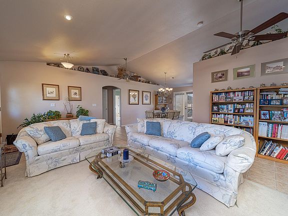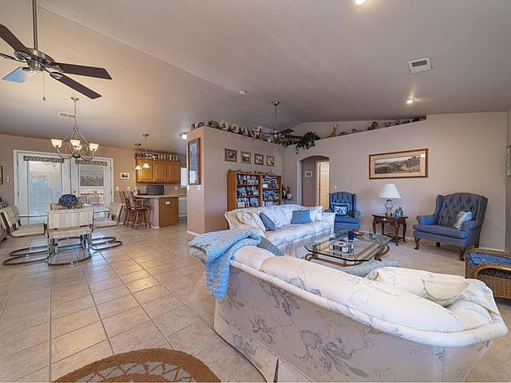 Charming White Willows Subdivision home is move-in ready! Open floor plan, vaulted ceilings, eat-in space in the kitchen, walk-in pantry, & plenty of cabinet space. All appliances stay with the home, including the washer/dryer. The bedrooms are a split plan with the primary, walk-in closet, 3/4 bath, & double sinks on one side, & two bedrooms with a full bath on the other. The spacious, fenced in backyard has a large deck just off the kitchen that's lovely for evenings on the patio! Large 3-car garage for plenty of parking or workspace, RV parking, & a sewer dump. The subdivision offers a playground and walking paths. The furnishings in home are available for sale. Please contact the agent for more details.