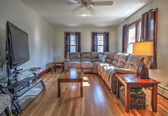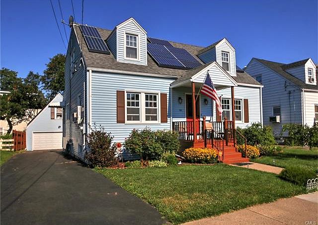 NOTHING TO DO BUT MOVE IN AND UNPACK! Fully dormered cape with detached 2 car garage with additional loft storage features 3 over-sized bedrooms, true eat in kitchen with hickory cabinets and Corian countertop, banquet size dining room, living/family room, gleaming hardwood flooring throughout, partial finished lower level adds additional family/game rec room/storage and office not included in sq.ftg; new energy efficient gas mechanicals including on demand hot water heater, solar panels, new 200 amp electrical service with hookup for generator, newer roof, windows and appliances. Conveniently located and minutes to train, major roadways, shopping, dining and beaches. Agents see Remarks and Attachments re solar panels and security system.