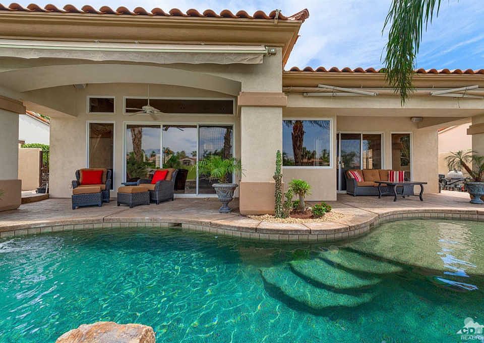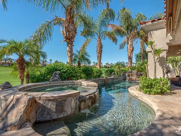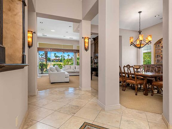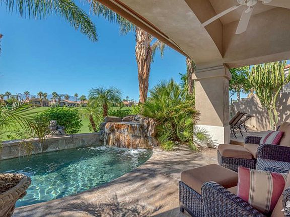 NEW PHOTOS coming next week. NEW living room furniture is ordered. NEW light paint just added to all bedrooms plus NEW BEDS LINENS. Fabulous western views with private salt pool, spa & custom BBQ entertainment center! Nestled in a private location with spectacular views but offering complete privacy. This beautiful turnkey furnished home is located at prestigious Indian Ridge Country Club in Palm Desert. You won't find a better value in a single family home complete with custom features throughout! The private patio and salt pebble tec pool, waterfall spa creates your own private oasis graceful foyer highlights soaring ceilings, custom wood treatments, crown moldings, travertine floors and opens to the spacious great room floor plan with floor to ceiling fireplace, wet bar & the fabulous views, custom courtyard & pool area. Entertain in the formal dining room which flows easily to the gourmet kitchen highlighted by custom granite center island, walk-in pantry, lots of counter space and updated cabinets. 3 en-suite private bedrooms and convenient office area.