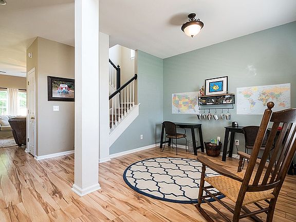 This beautiful two-story, 3 bedroom, 2 1/2 bath home has been immaculately maintained, with a NEW ROOF and NEW HVAC SYSTEM! As you enter in from the full front porch, you will see new pergo flooring downstairs. The bright kitchen opens up to a large eat-in area. The wood burning fireplace is the focal point of the living room. Looking out, you can enjoy the privacy of woods behind the large fenced-in backyard, on this premium lot. The owners enclosed the back porch, adding on a 140sq ft. BONUS ROOM, that can be easily used for an office or playroom. This is not included as part of the total square footage of the house. Upstairs, the Master Bedroom is accented by vaulted ceilings. The master bath features dual vanities with a separate garden tub and shower, leading into the walk-in closet.
