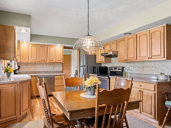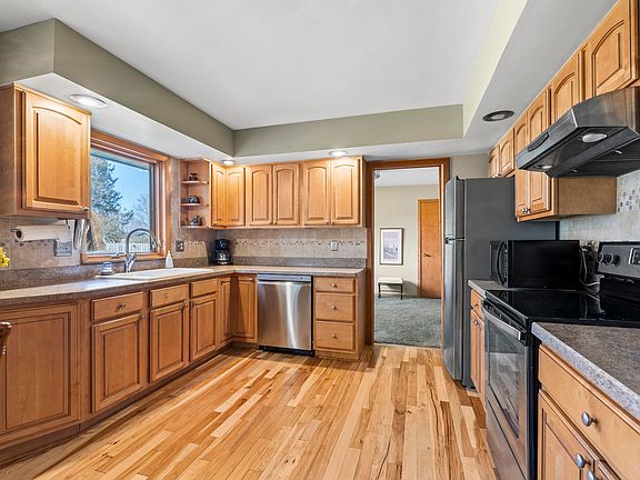 This property is a three-bedroom, two-bath home situated in Glendale Subdivision. It features a spacious Great Room with numerous windows and a vaulted ceiling. The residence includes an attached two-car garage and hardwood floors beneath the carpeting. The kitchen is expansive, offering ample cabinetry and counter space, and it integrates seamlessly with the dining area. The exterior is landscaped and has a generously sized rear yard. Additionally, the unfinished basement provides potential for further living space.