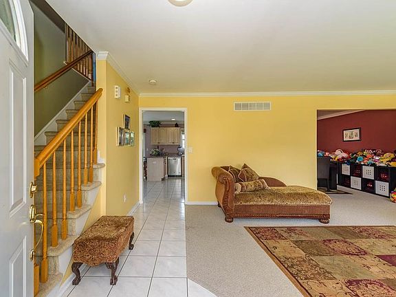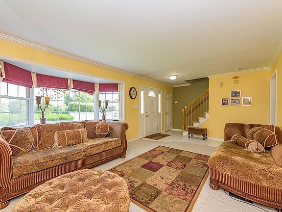Beautifully maintained 4 bedroom and 2.5 bathroom colonial. Formal living room with gorgeous wood burning fireplace. Bay windows. Crown moldings throughout the home. Formal dining room. Large eat-in-kitchen with stainless steel appliances, attached deck, in the back yard. Walk in pantry. Powder room on the first floor. Partially finished basement could be used as a rec room or family room. Master bedroom suite has its own master bathroom with soaking and separate shower stall. Big back yard perfect for entertaining. Stop looking and make this your home now!
