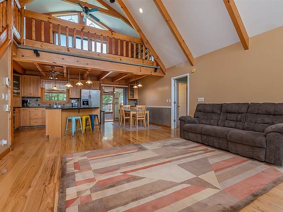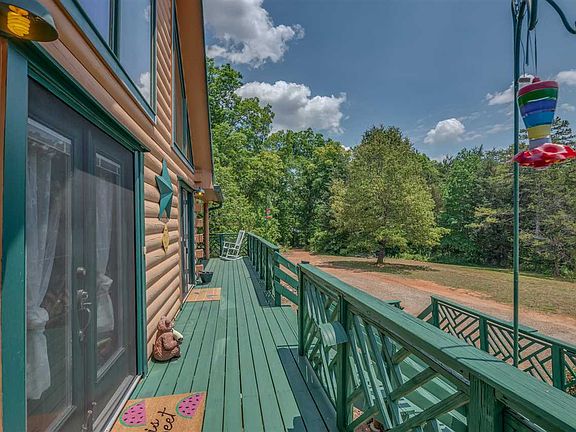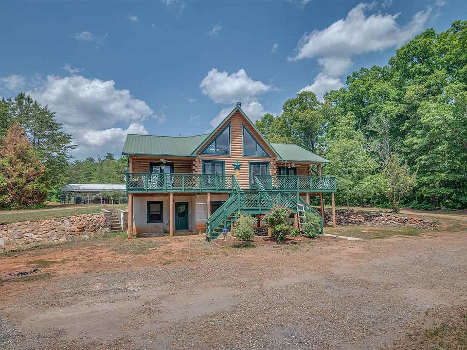 Privacy without seclusion in the custom split bedroom log home on 14.79 acres. 3 bed/3bath with open concept, vaulted ceilings, the stone fireplace with woodstove insert adorns the living room, kitchen boasts granite countertops, a large island, custom hickory cabinets, a sunroom, and a loft with private deck. Master suite attached to a private covered porch, master bath has dual shower heads with tiled shower, 2nd bedroom attached to private covered porch. Basement houses the 2nd master suite complete with master bath and private entrance. A family room and a hobby room or 4th bedroom makes this a great functioning space. Property is serviced by public water. In ground pool and large pavilion are perfect for entertaining. A 30x50 barn with power has loft with bath serviced by well water. Per seller, Rhino Shield has been put on the exterior of the home providing maintenance free exterior and comes with a lifetime warranty. Bring the horses!!!