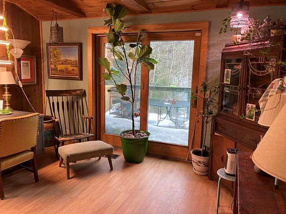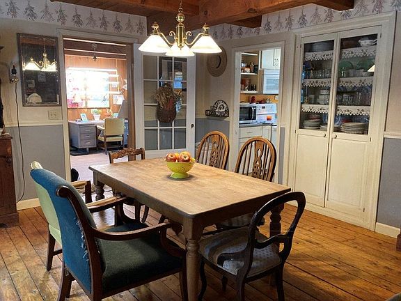 Paved Road Location With Views of Isinglass Mountain! Lovely yard and multiple perennial gardens. The living room has a brick wood burning fireplace and built in book shelves, the kitchen was updated in 2011, the dining room has custom built ins, wood beamed ceilings and wood floors on the first floor and the den/office has sliders to the rear deck. The windows and doors have been updated over the years. The second floor bath has a soaker tub and has been remodeled. The primary bedroom has custom drapes, vaulted wood ceilings, a Hubbardton & Forge light fixture, and there are hardwood floors through out the 2nd floor. The 3/4 bath on the first floor has a granite stone shower with glass surround. Attached 2 car garage, full walk out basement with work bench, cabinets, and counter space for projects. 2 acres+/- with paved driveway, enjoy amazing sunsets from the deck or relax at the fire ring, and there is beautiful fall color from the front yard mature maple tree. Outbuildings include the "chicken palace" , formerly used as a garden shed. Surrounded by large land owners this site is high with no visible neighbors. Convenient travel time to the Upper Valley, New London, Concord, & Plymouth areas. Northern Rail Trail and many area lakes/ponds nearby with public access.