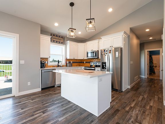 Welcome to Cypress Grove, your new home nestled in NW Mandan! Inside you will find an inviting open floor concept, with vaulted ceilings, 5 bedrooms and 3 bathrooms, providing all the space you need. The inviting kitchen, has a unique custom backsplash stainless steel appliances, stunning countertops, a large center island, and a pantry. The primary bedroom has a walk-in closet, and an en-suite bathroom with a tiled shower. Along with the primary bedroom the upper level also has 2 additional bedrooms and a full guest bathroom. The finished basement adds additional living space, with 2 extra bedrooms, a full bathroom, laundry room, and a large family room with a custom climbing wall. The heated 3-stall garage is equipped with hot and cold water hookups, a floor drain, and plenty of space for vehicles and storage. Outside you will find a fenced yard, a deck and plenty of space for playing and entertaining. Schedule a showing today!