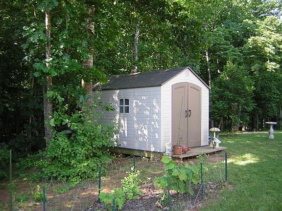 This little neighborhood has all custom homes, built on larger lots. This home has woods in the back and feels like a retreat. The work shed has electric wiring. This home will not last.