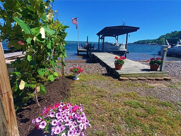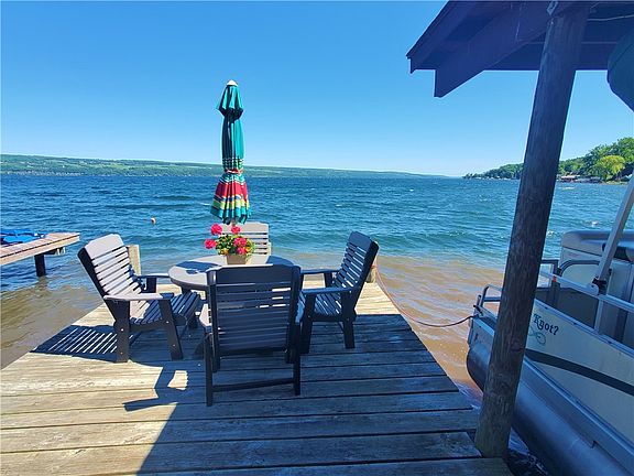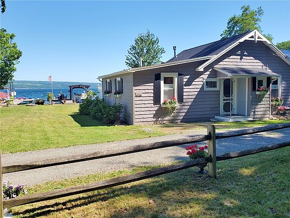 ALERT: New to market - LEVEL Seneca Lake cottage with many improvements. Clean comfortable Lake Seneca retreat. Drive to the door level parking and walk to the level shoreline. Ranch style home limits the steps. Updated windows, roof, siding, decks, and that doesn't include the interior with updated appliances and an updated bathroom ! Nothing for you to worry about. Easy to maintain and enjoy. Can't go wrong here - your family will love it !! Tucked into the charming Castle Point Road: This cozy private drive means NO TRAFFIC to worry about and the passers by are your next door neighbors. Permanent dock and covered boat hoist. Included furnishings list available. Updated survey completed. Split AC unit keeps you cool. This seller is ready to make your transition smooth and enjoyable. Delayed negotiations until Monday July 19th at 1pm. PUBLIC OPEN HOUSE THIS SUNDAY JULY 18th 1-4pm.
