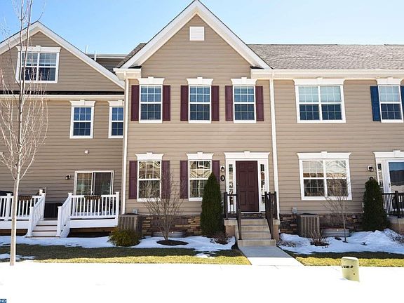 This magnificent townhome is perched in the sought after Carriage Hill Development in Doylestown. Central Bucks School District. Why wait for new construction, when you can move right into this 'like new' 3 year old home. This home has 3 bedrooms, 2.5 Baths and a full finished basement. The spacious eat in kitchen is gorgeous with 42' Espresso cabinets, stainless appliances, wainscoting, kitchen island, which holds additional outlets, pendent and recessed lighting. Beautiful hardwood floors through out the first level. The second level boasts 3 bedrooms with carpet and 2 full baths with tiled flooring. The Master bedroom is spacious with a generous walk in closet. The full finished basement is very cozy and complete with laundry. This home is energy efficient. You can enjoy a beautiful day on your brick paver patio or the community gazebo. Walking distance to Hanusey Community Park with various sports fields, playground and walking paths. Just an $8 Uber ride away from everything Doylestown has to offer.
