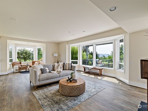 Exquisite Bellingham private estate on a rare 5 acre parcel with gorgeous bay view! This Sid Nesbit redesigned 1922 farmhouse was extensively remodeled in 2010. Elevator takes you up to the primary bedroom with en-suite & private deck! 40-year roof, air conditioning, 2 fireplaces, solar panels & commercial gas range. Fully finished downstairs has kitchen, bath, tons of storage & extra rooms for ? There's also a private 1+ bedroom/living area with separate entrance & laundry for your guests/friends or business. Property has gated entry, fruit trees, chicken coop (hobby farm?) & is fully fenced. Tons of outdoor entertainment options with huge front & back composite decks & large patio. Fantastic home in Bellingham! Seller financing an option!