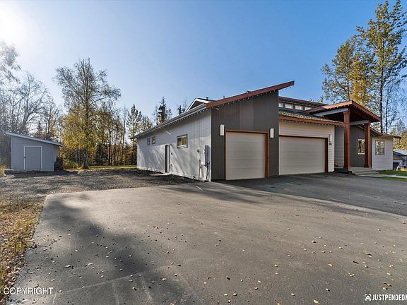 This one-of-a-kind ranch home sits on a sunny acre lot in South Anchorage. You'll be instantly amazed by the spaciousness of each room and high-end finishes throughout. The floorplan was thoughtfully designed with a modern eat-in kitchen that flows easily into the living and dining areas. On one side of that space is a luxurious primary bedroom with private ensuite similar to a 5-star hotel.The other "wing" features three more bedrooms, a spacious TV/family room, plus two bonus rooms (workout room and home office) to meet everyone's needs and allow for separation when needed. Special features include custom wood accents throughout, a hidden walk-in pantry off the kitchen, and a full crawlspace that feels more like an unfinished basement. You could not build this house in today's market and get all the features this home has to offer.