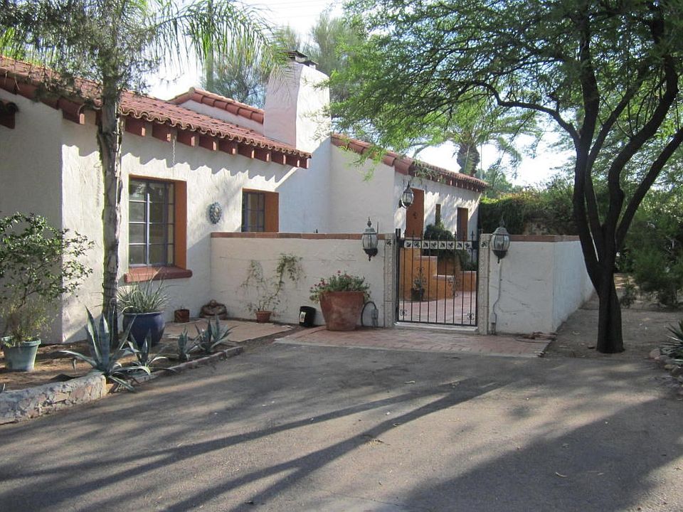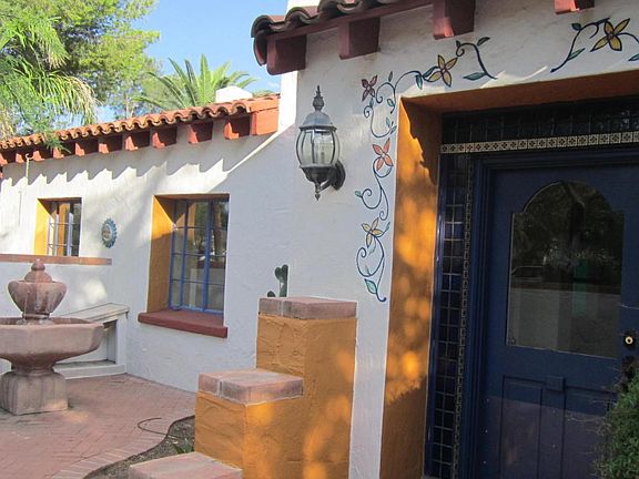 For more information on this property, contact the Listing Agent, Jeffrey Zimet at (520) 471-5333 or JeffZimet@LongRealty.com. Captivating 1937 Santa Barbara California style Spanish home! Striking tongue/groove wood beam ceilings, saltillo Mexican brick flooring. Magnificent fireplace in living room. Tile roof, across the street from the Randolph recreation center for golf or tennis! Private spa room off master bedroom. Huge workshop areas and storage. Delightful and whimsical courtyards with fountains, Fanciful murals and artwork around the outside of the property. Small basement with exterior entrance. One of a kind property and a whole lot of home in this price range! Convenient central location right in the heart of our community.