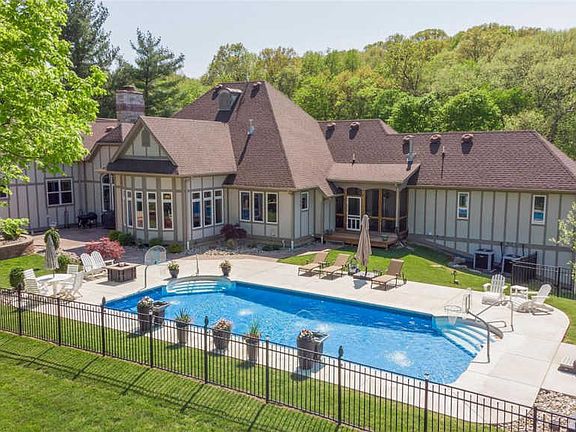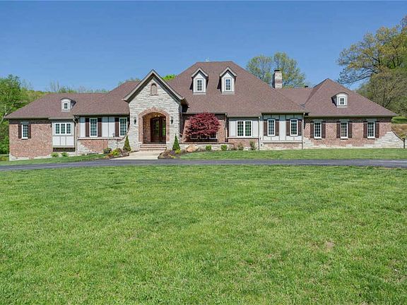 Wildwood, Rockwood Schools; Prestigious, custom built ranch ranch nestled on 9.8 level acres with stunning outdoor living area including 2 yr old pool, hottub, pool house & private bath. Ideal horse property!. The brick/stone elevation is accentuated by the arched double-door entry welcoming you to enjoy wide-plank, hand-scraped hdwd floors throughout the main floor. Features include tray ceilings, dramatic vaults, crown, built-ins & 2-panel 8ft doors. A grand center island is the highlight of the kitchen which includes top-of-the-line appliances, custom cabinetry, granite counters, tile backsplash & opens to the hearth rm w/floor-to-ceiling stone fireplace. Master suite boasts a deep coffered ceiling, master bath w/his-n-hers vanities, walk-in shower & custom walk-in closet and french doors leading to the private screed porch. Three BRs, one w/fireplace, & 2 full baths create the addâl bedrm wing. Finished walk-out lower level with bedrm, full bath, entertainment area & exercise rm.