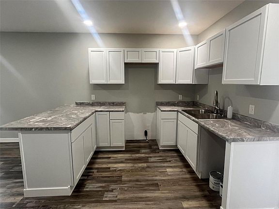 Welcome to this completely remodeled and updated home! The home has an open living room, kitchen, and dining area. The kitchen has white cabinets and a breakfast bar. The home has two bedrooms. The main bedroom has a private bathroom. The second bathroom has a walk-in shower. There is a laundry room off the kitchen. The home has a partial basement. Enjoy the outdoors from the front porch, back patio, or the flat backyard. There is a two car detached garage behind the house. There are stairs to the attic for additional storage. The home has new electrical, plumbing, roof, windows, and siding. Located just a block from Oakwood Elementary School.